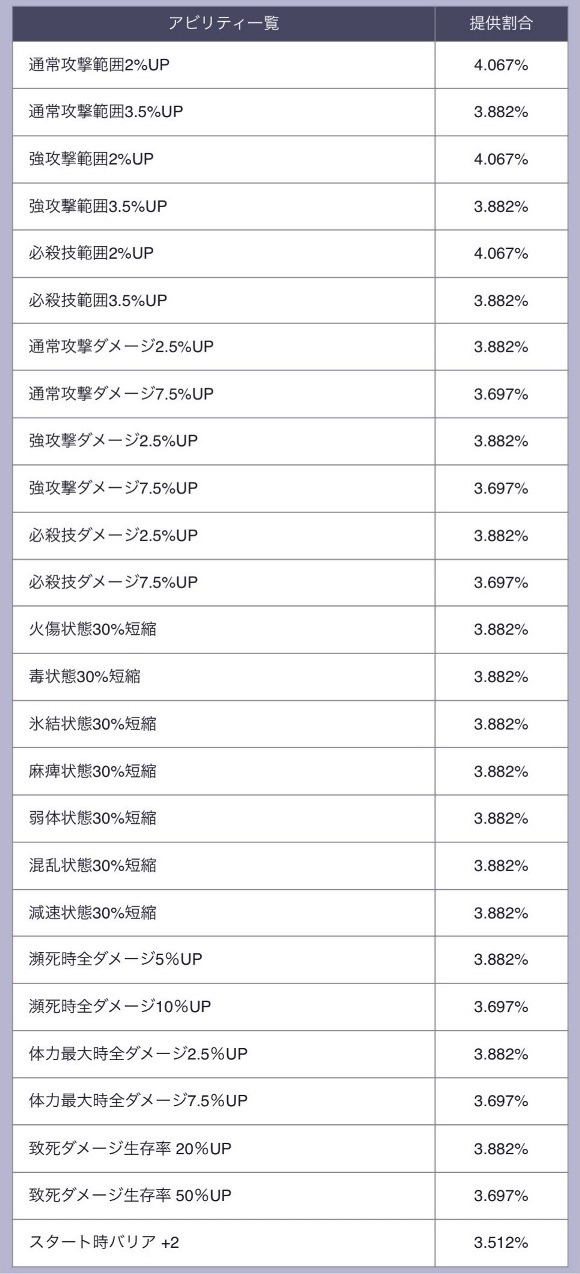 ![]() | コン(※1) | 吹き飛ばし耐性20%UP | 370 | 73 | 73 |